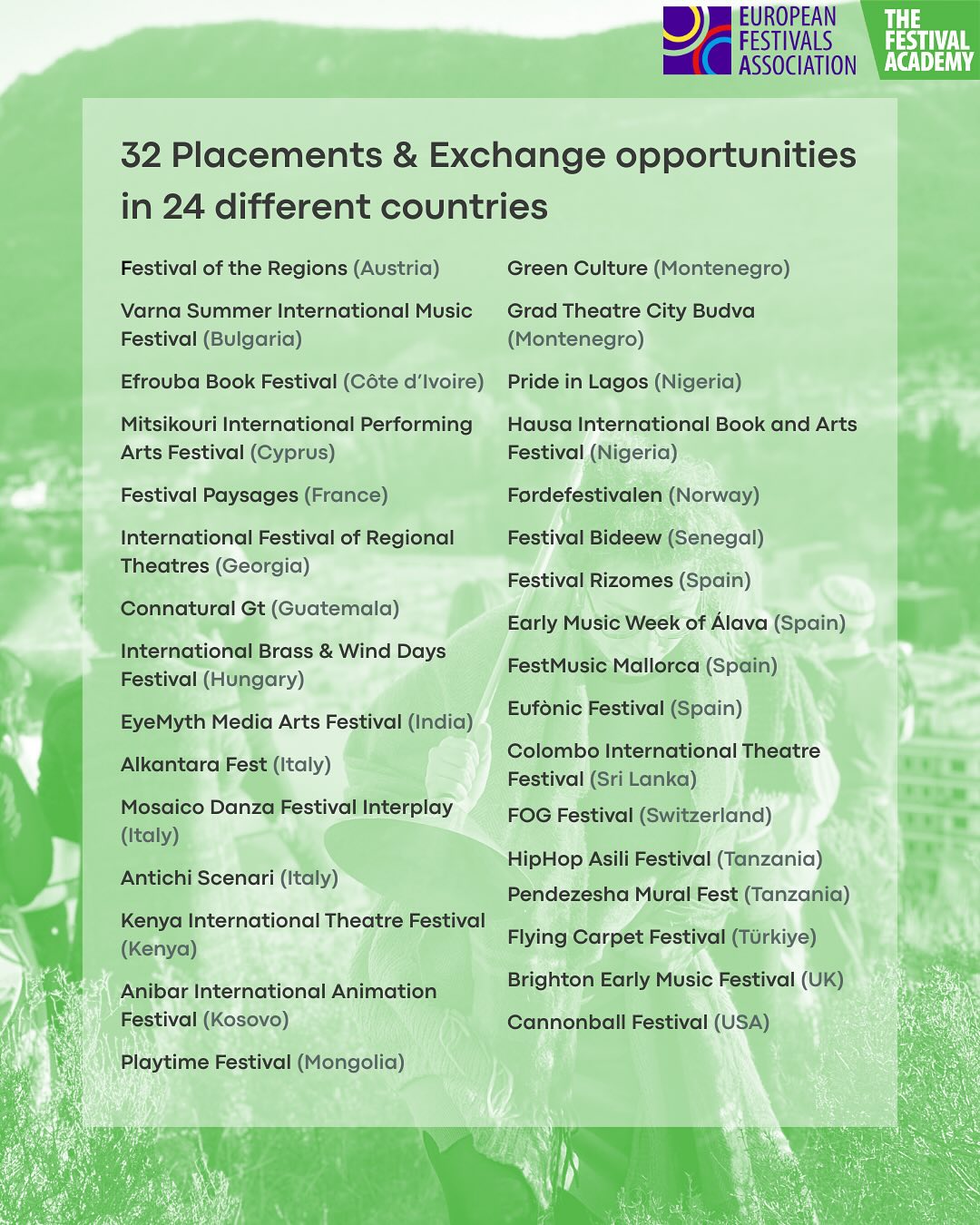 La Fédération Française des Clubs UNESCO est partenaire de l’événement, ainsi que The Festival Academy, le festival Bideew au Sénégal et Les prochaines éditions au Québec.